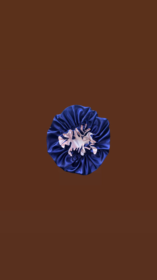 Navy Blue & Blush Pink Reversible Satin Bonnet